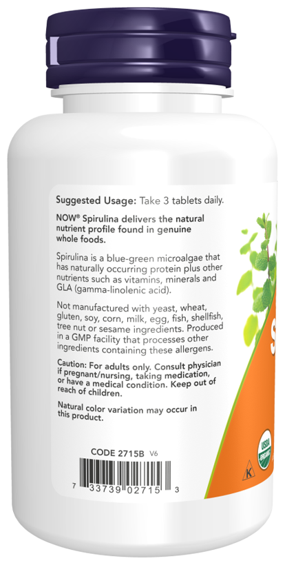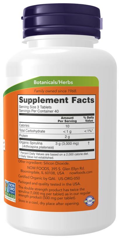 NOW Certified Organic Spirulina 1000 mg, 120 таблеток