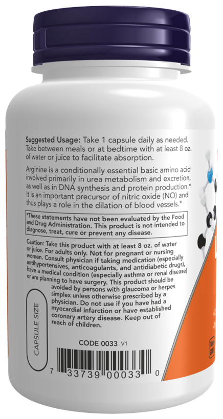 NOW L-Arginin, L-Аргинин, 180 капсул