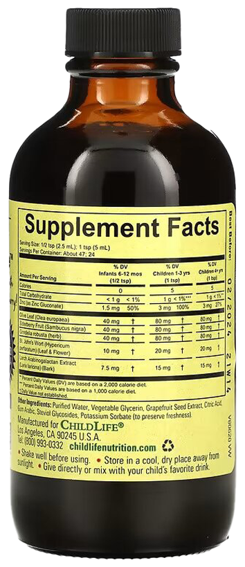 ChildLife First Defense - это эффективная жидкая добавка, специально разработанная для поддержки и укрепления иммунной системы детей. Этот продукт сочетает в себе тщательно отобранные натуральные ингредиенты, такие как экстракты эхинацеи и олеандра, которые известны своими иммуномодулирующими и защитными свойствами.