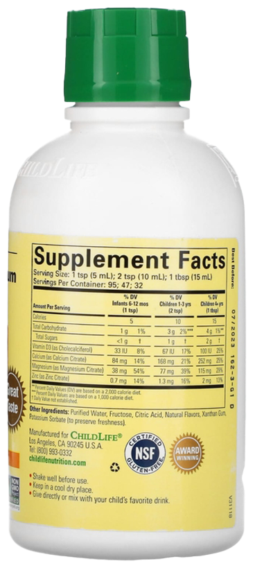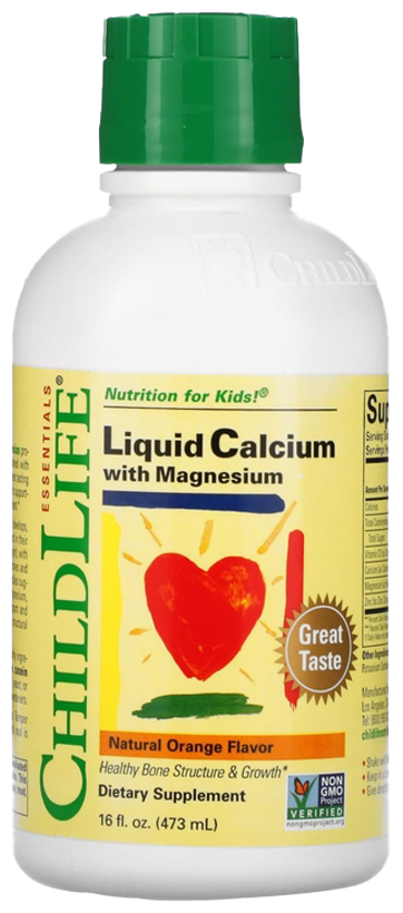 Liquid Calcium with Magnesium от ChildLife содержит два незаменимых минерала в сочетании с витамином D и цинком в сбалансированной формуле с высокой усвояемостью и прекрасным вкусом. Эти основные питательные вещества необходимы для поддержания здорового роста и развития костных тканей вашего ребенка.
