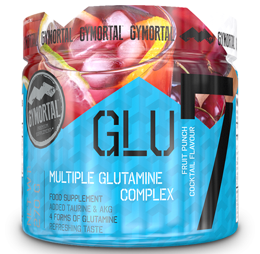 Спортивная добавка GLU 7 от европейского производителя Nutriversum содержит четыре разновидности глютамина, каждый из которых обладает разной скоростью усвоения и абсорбции. Каждая порция добавки обеспечивает организм 6000 мг глютаминовой матрицы, в состав которой входит микронизированный L-глютамин, глутаминовая кислота, L-глютамин гидрохлорид, глутамат натрия. Помимо мышечного роста и восстановления, глютамин также повышает иммунитет и способствует борьбе с вирусными заболеваниями.