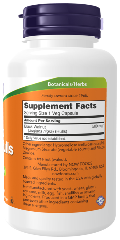NOW Black Walnut Hulls 500 mg, 100 капсул