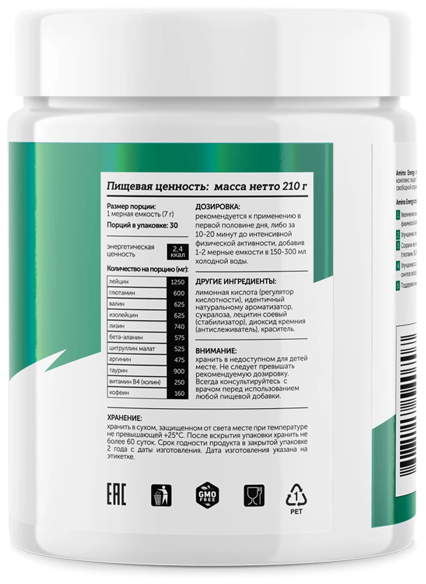 Amino Energy - это сбалансированный комплекс, в состав которого входят наиболее важные для спортсмена аминокислоты в биодоступной форме, дополненные кофеином и таурином. Благодаря отсутствию привычных жиров и углеводов в составе остальные компоненты быстро усваиваются, насыщая мышцы энергией и строительным материалом для развития.