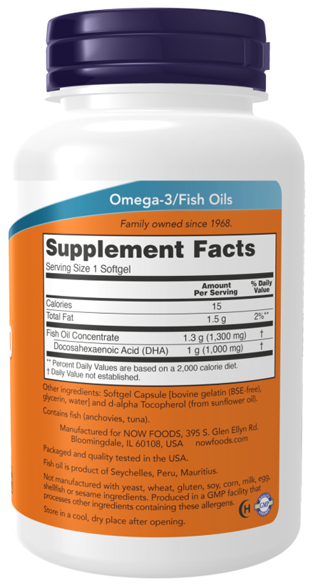 ДКГ помогает поддерживать здоровье мозга и играет роль в работе когнитивной функции. ДГК-1000 от Now содержит в четыре раза больше ДГК (1000 мг на капсулу), чем продукт обычного действия (250 мг на капсулу). Этот концентрат рыбьего жира производится в соответствии со строгими стандартами контроля качества. Он протестирован на отсутствие потенциально опасных загрязняющих веществ (например, ПХД, ртути, диоксинов и других загрязняющих веществ).