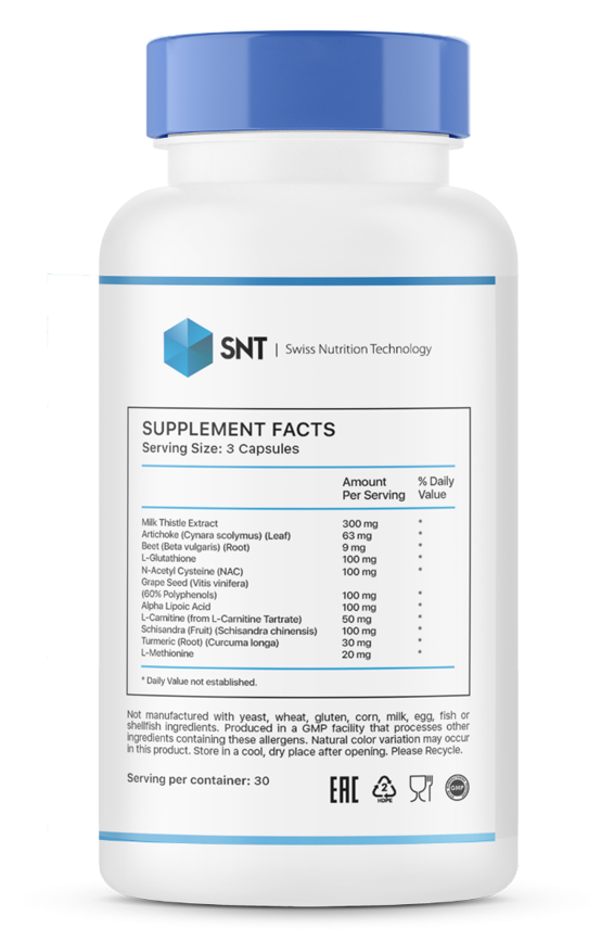 Liver Support - комплекс с уникальным составом, который нормализует работу печени и помогает выводить токсины из организма. NAC и метионин участвуют в образовании глутатиона - одного из самых сильных антиоксидантов организма. L-Карнитин необходим для переноса жирных кислот, а альфа-липоевая кислота - для здорового энергетического обмена в клетках. Также в комплексе содержится целый ряд растительных экстрактов, участвующих в регулировании работы печени.