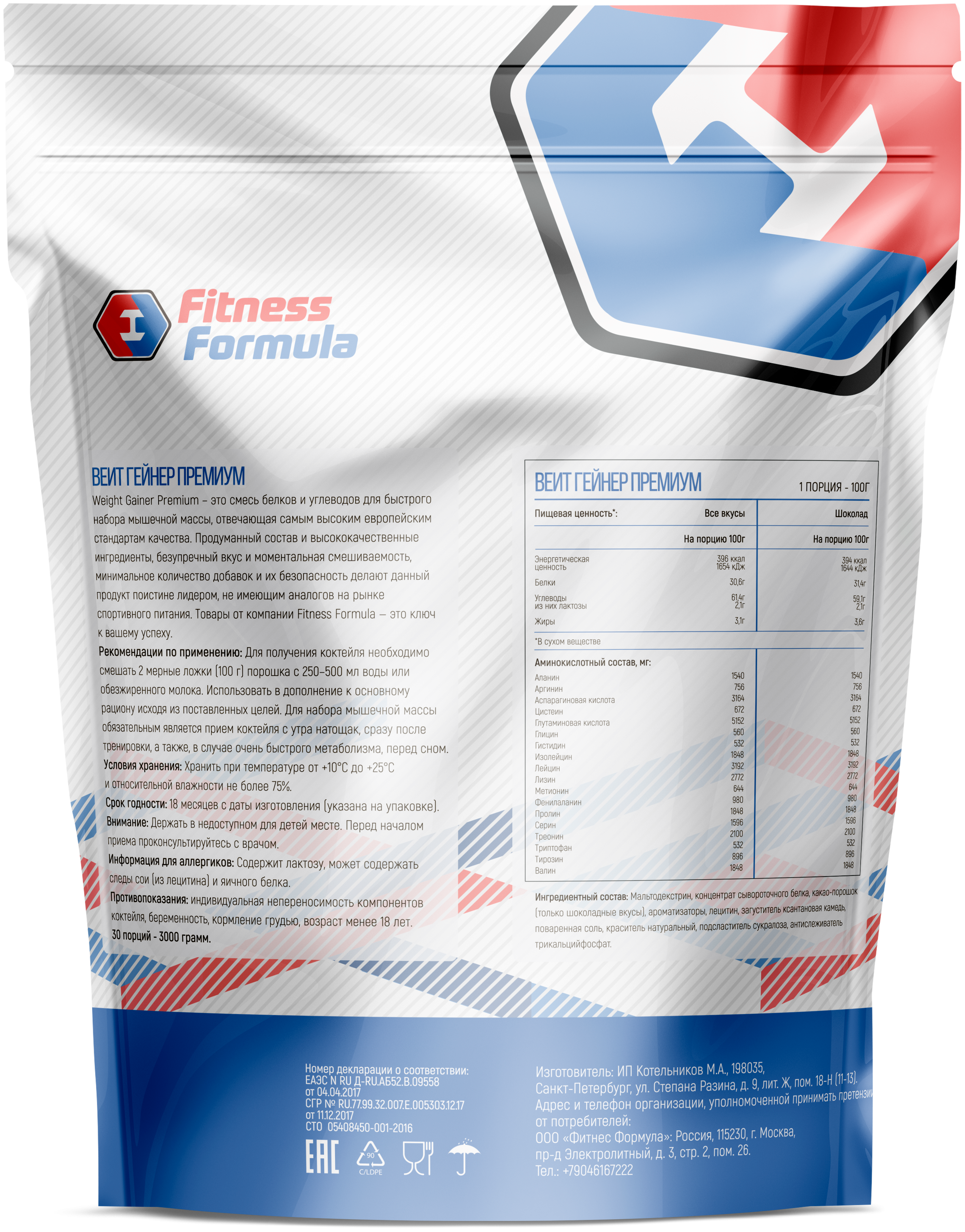 Почему стоит купить 100% Weight Gainer Premium от Fitness Formula?