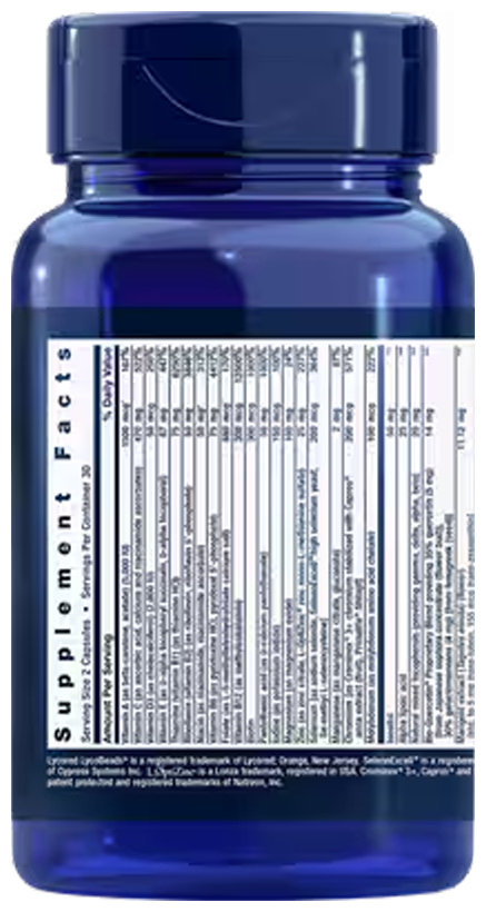 | Цинк (в виде цитрата цинка, сульфата моно-L-метионина цинка L-OptiZinc) | 25 мг | 227% |