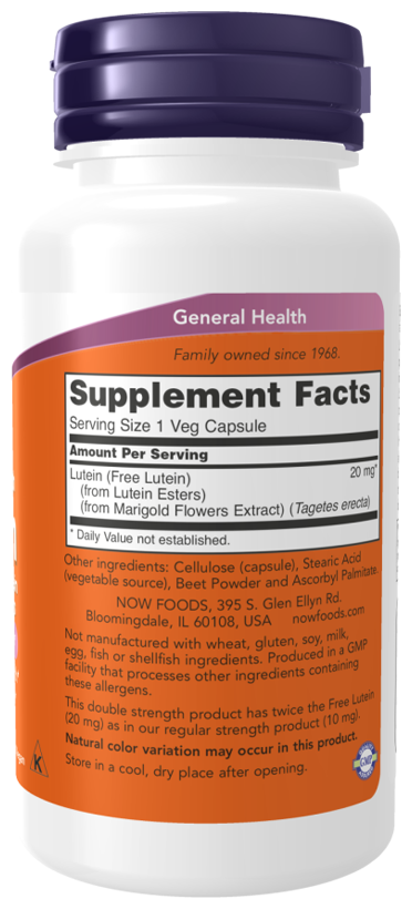 NOW Lutein Double Strength 20 mg, 90 капсул