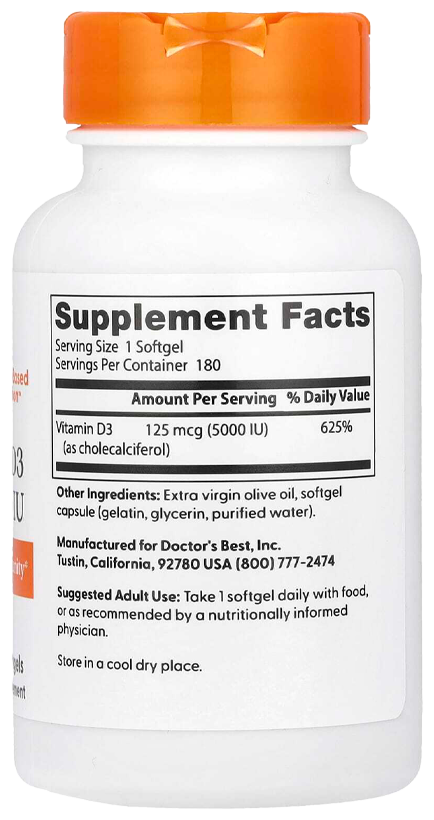 Doctor's Best Vitamin D3 5000IU, 180 капсул