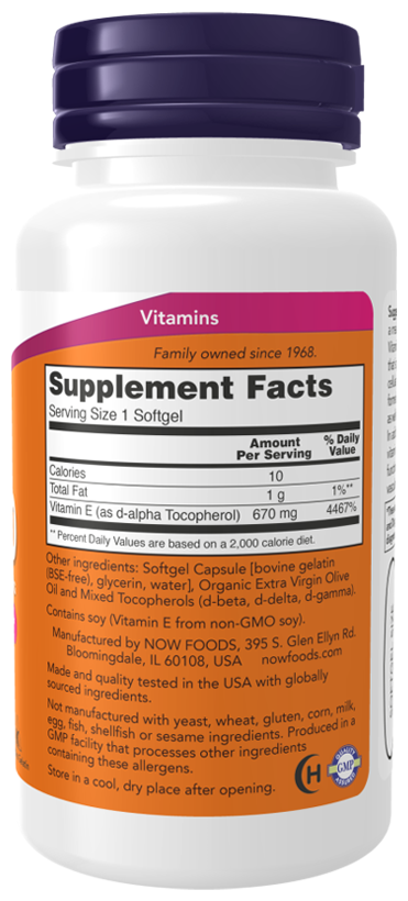 NOW E-1000 Mixed Tocopherols, 50 капсул