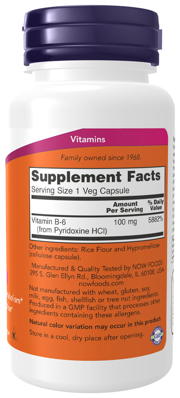 NOW B-6 100 mg, 100 капсул