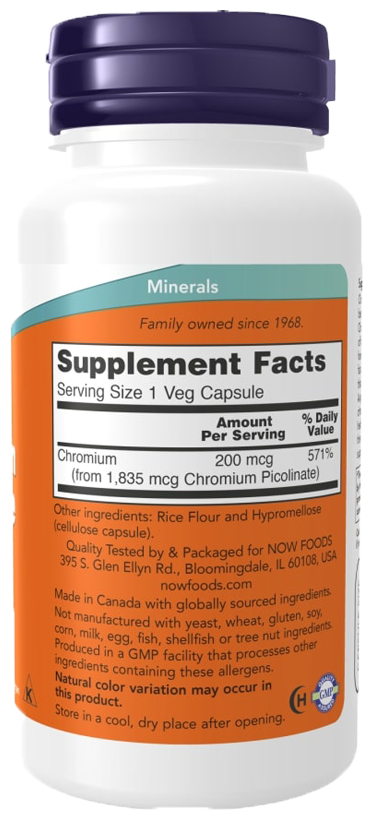NOW Chromium Picolinate 200 mcg, 100 капсул