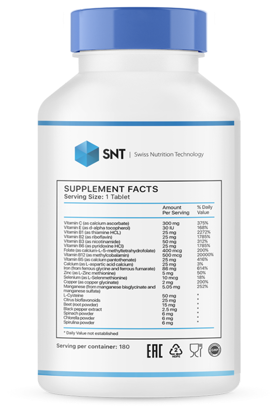 | Витамин B12 (как метилкобаламин) | 500 мкг | 20000% |